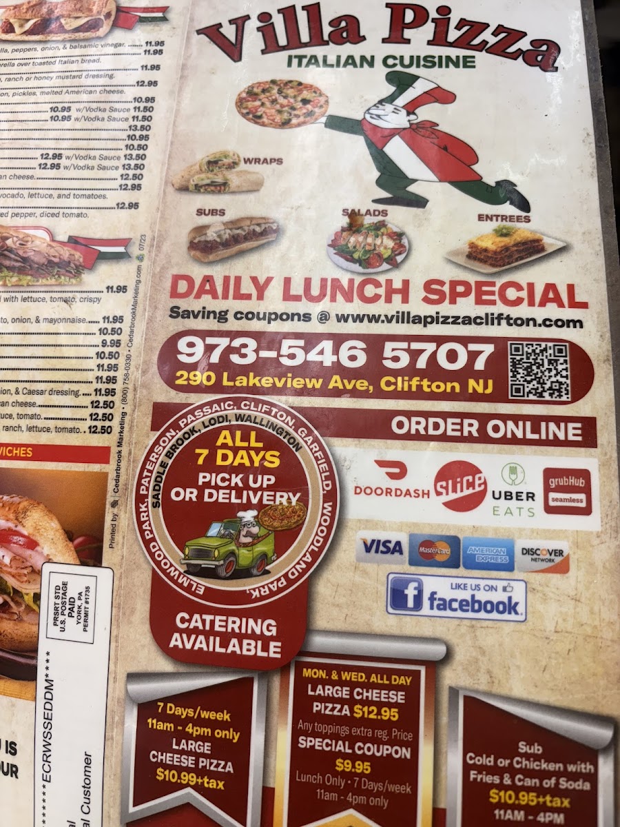 Villa Pizza, located at 290 Lakeview Ave, Clifton, NJ, offers a diverse and flavorful menu catering to a variety of tastes. Whether you're in the mood for a hearty sandwich, a delicious entrée, or a comforting dessert, Villa Pizza has something for everyone.